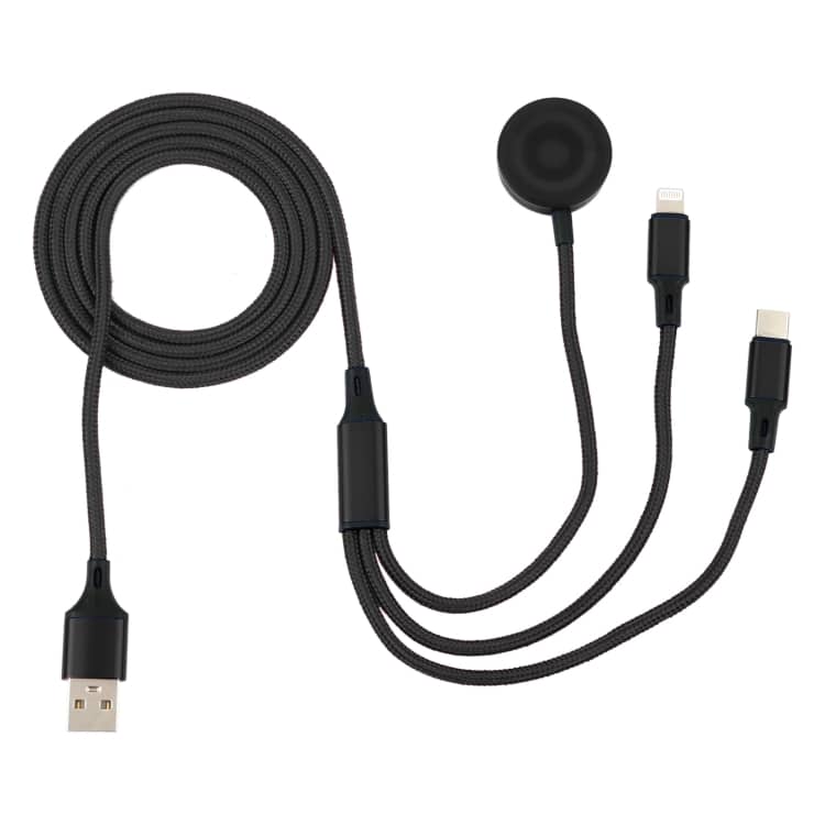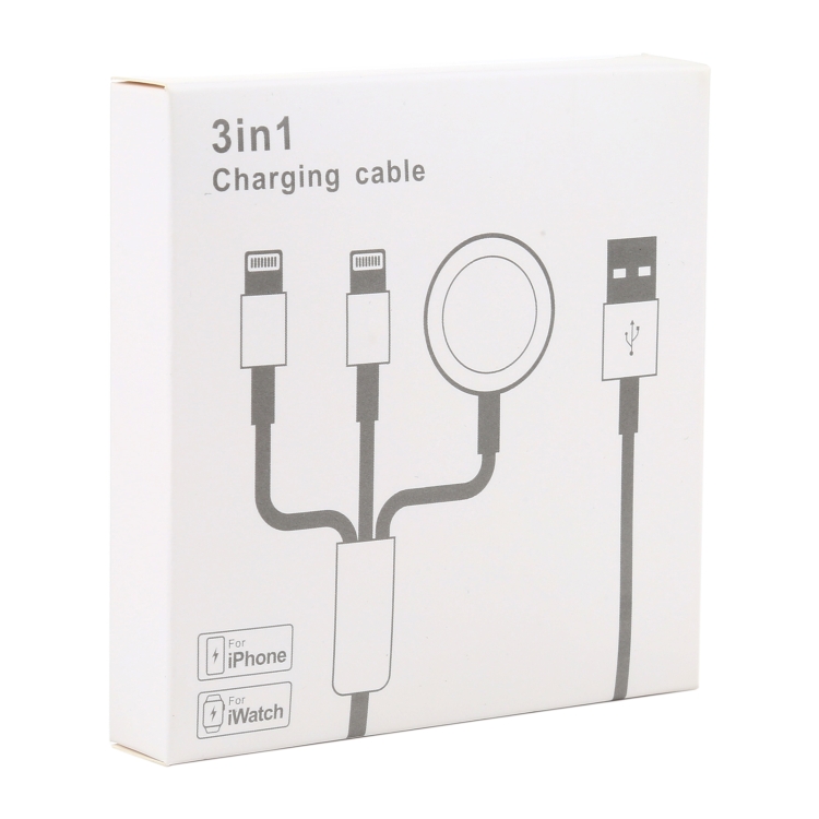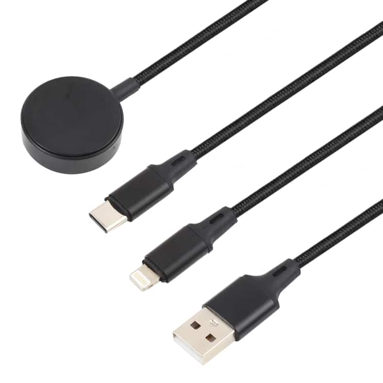 Für iPhone / Apple Watch 3 In 1 8 Pin + Typ-C / USB-C + magnetische Ladebasis Multifunktions-Ladekabel, Länge: 1 m