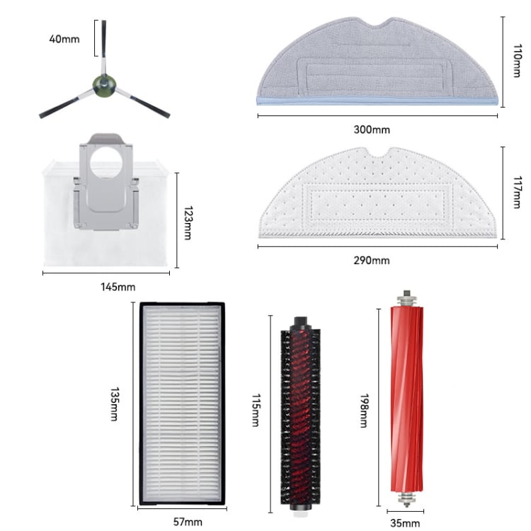 3. Es stehen verschiedene Zubeh?rteile zur Auswahl, wie Seitenbürsten, Hauptbürsten, Filter usw., um unterschiedliche Reinigungsanforderungen zu erfüllen.