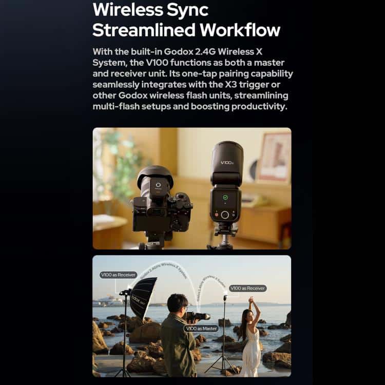 7. Integriertes Godox 2.4G Wireless X-System für ferngesteuerte TTL-Leistungssteuerung.