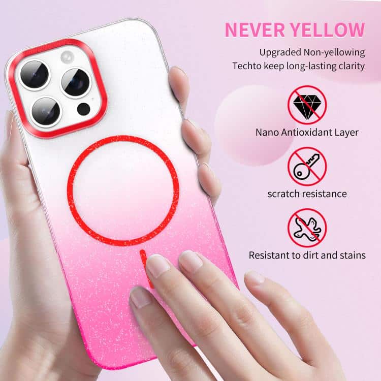Gold Diamond Glitter Gradient MagSafe Shockproof Phone Case, For iPhone 16, For iPhone 15 Pro Max, For iPhone 15 Pro, For iPhone 15 Plus