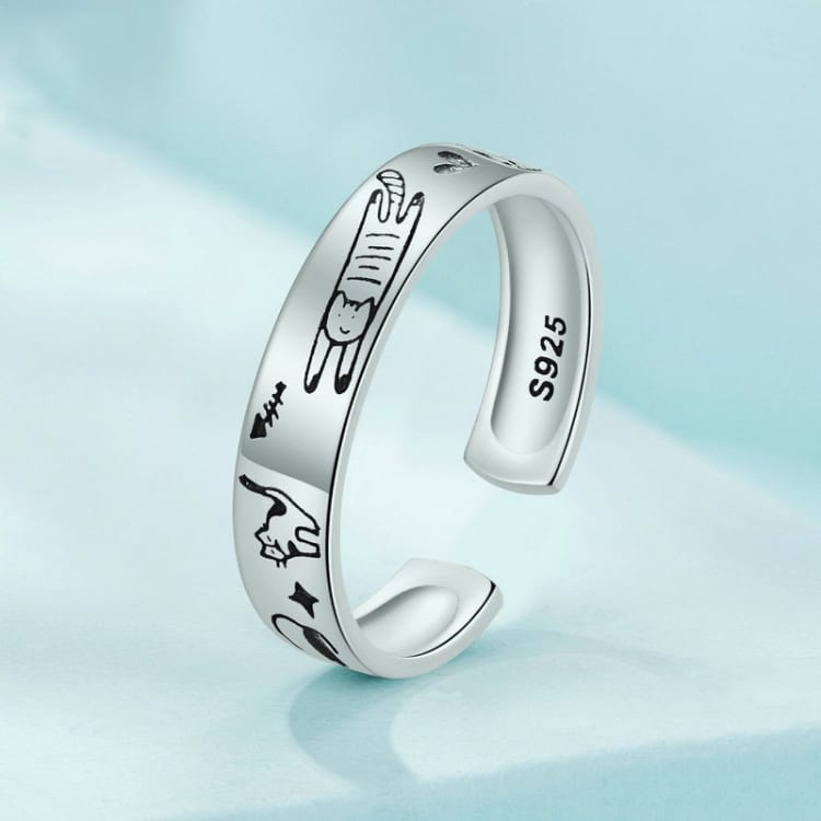 Gravierter Katzen-Graffiti-Ring aus Sterlingsilber