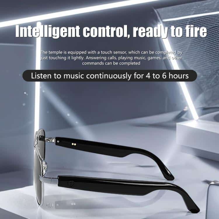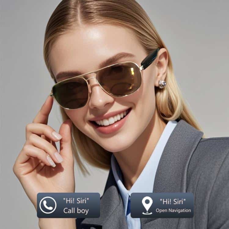 4. Die Sonnenbrille verfügt über integrierte Mikrofone mit Geräuschunterdrückung, mit denen Sie Anrufe tätigen und entgegennehmen können.