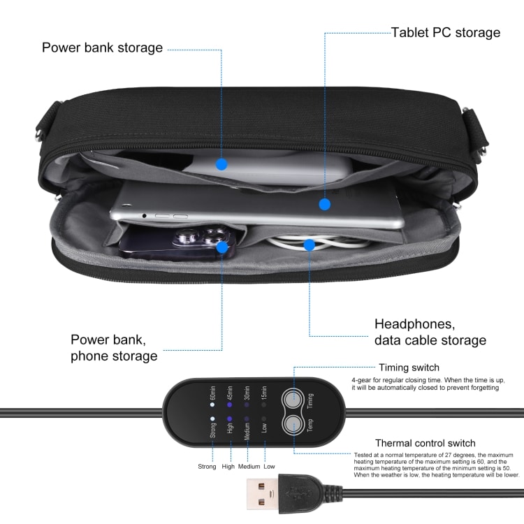 4. Das Heizelement kann zerlegt werden, es kann im Sommer als tägliche kleine Tasche verwendet werden und ist nach der Demontage leicht zu reinigen.