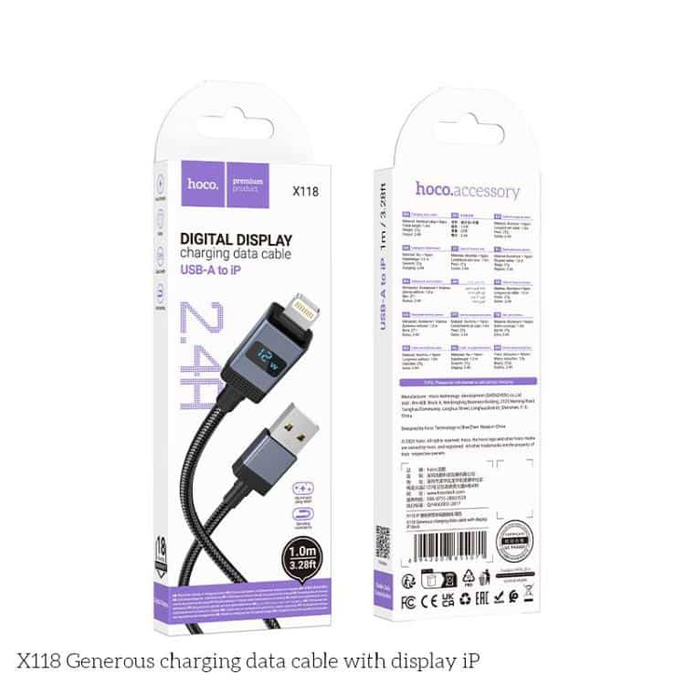 hoco X118 Generous 1m 60W Fast Charging Data Cable with Display
