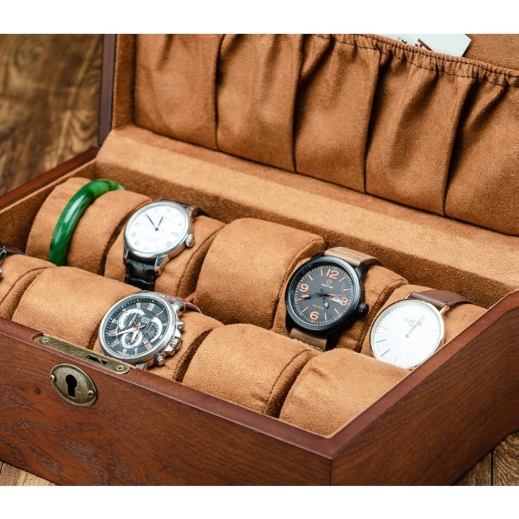 Holz-Uhrenbox, Schmuck- und Uhrenkollektion, Aufbewahrungsbox, 2 Big Pillows + 5 Small Pillows, 10 Epitope Wooden