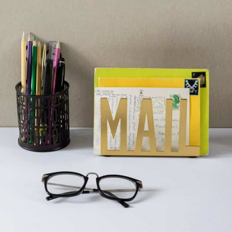 2. Freistehender Briefhalter für den Schreibtisch mit schwarzen Metallausschnitten für Rechtschreibung in einzigartigem Stil