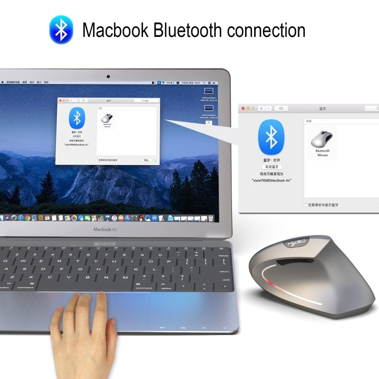 HXSJ T29 Bluetooth 3.0 Drahtlose Bluetooth 6-Tasten 2400 DPI Einstellbare Ergonomie Optische Vertikale Maus, 6 Buttons T29 Black, 6 Buttons T29 Grey