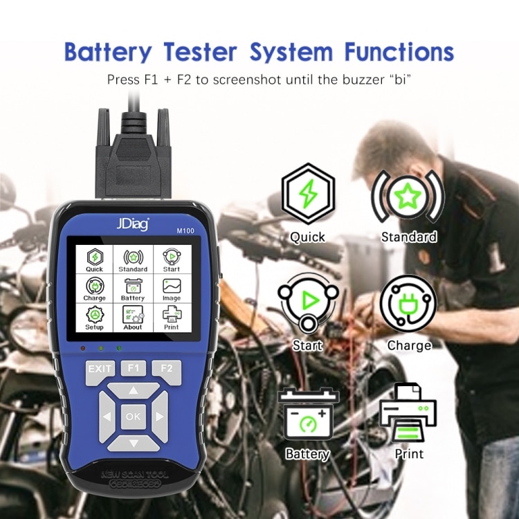 JDIAG M100 Motorräder 2 in1 OBD-Scanner-Batterietester, vereinfachte Version