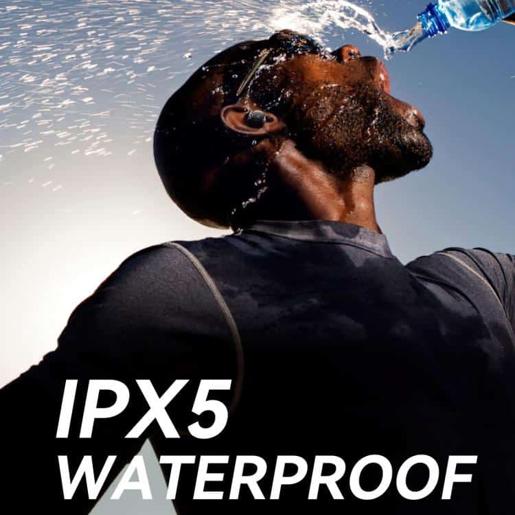 4. IPX5 wasserdicht: Die Ohrhörer sind vor schweißtreibenden Trainingseinheiten, plötzlichen Regenschauern und verschütteten Getränken geschützt.