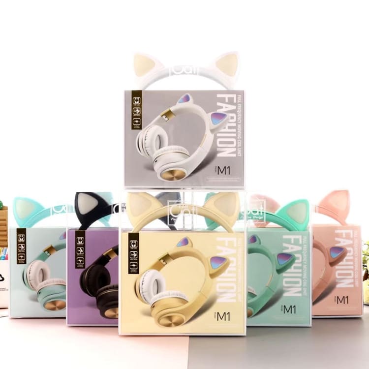 Kabellose Bluetooth-Kopfhörer mit Katzenohren und Licht