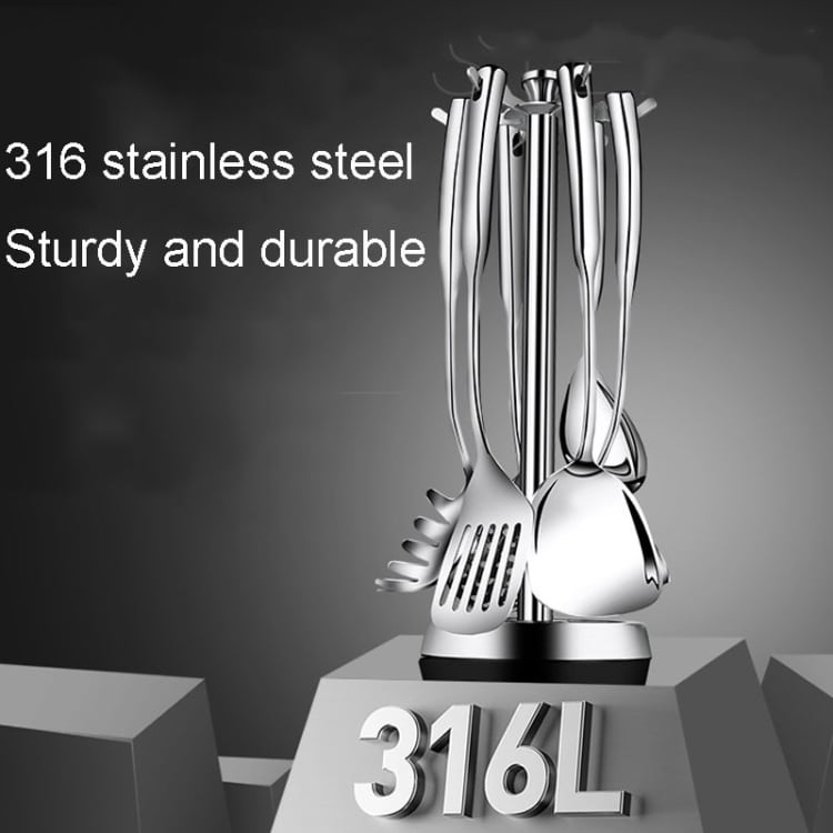 Kacheeg Haushalts-Edelstahl-Spachtel, Küchenutensilien, Kochutensilien, Spatula, Soup Spoon, Leaky Spoon, Frying Spatula, Noodle Scoop, Rice Spoon, Storage Frame