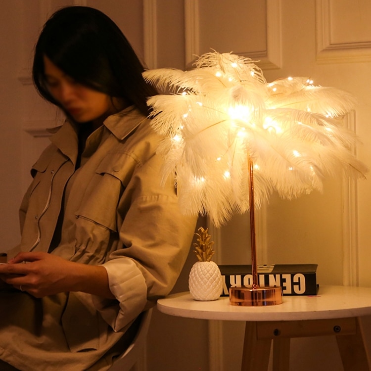 Kreative Schlafzimmer-Feder-Tischlampe, Nachtlicht, dekoratives Licht