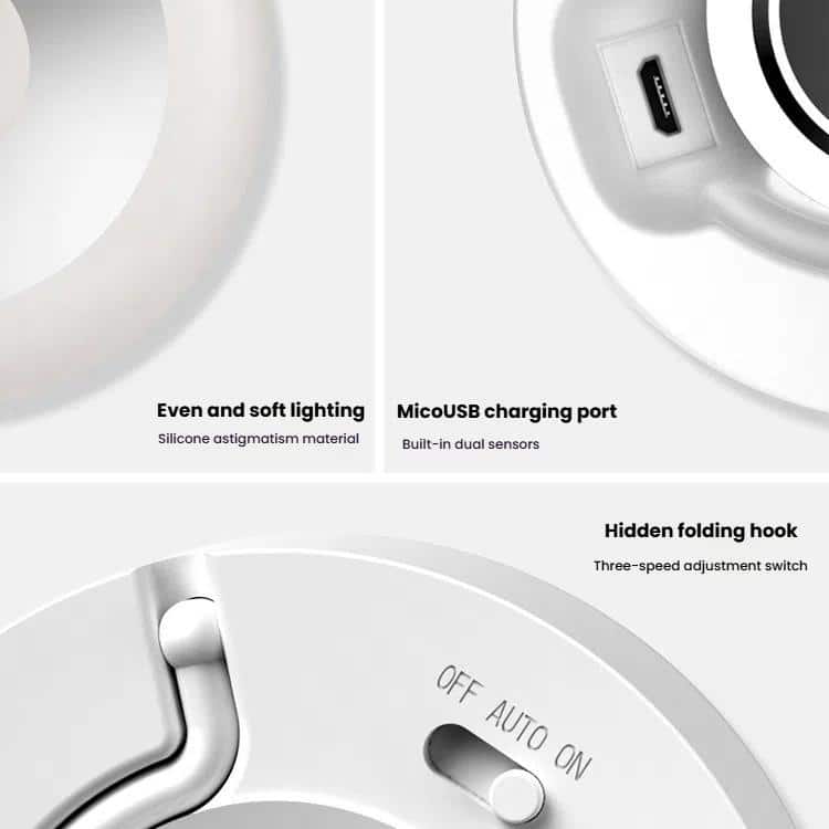 LED-Bewegungsmelderleuchte mit versteckten Haken, Klebepads und Magnet