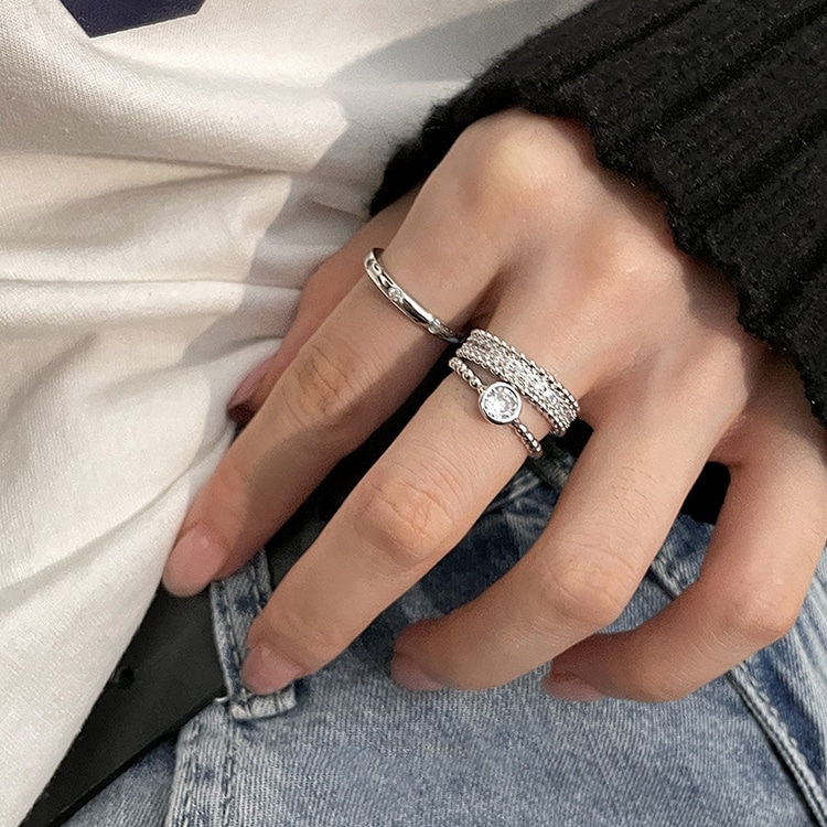 Offener verstellbarer Ring aus S925 Sterlingsilber mit glänzendem Moissanit