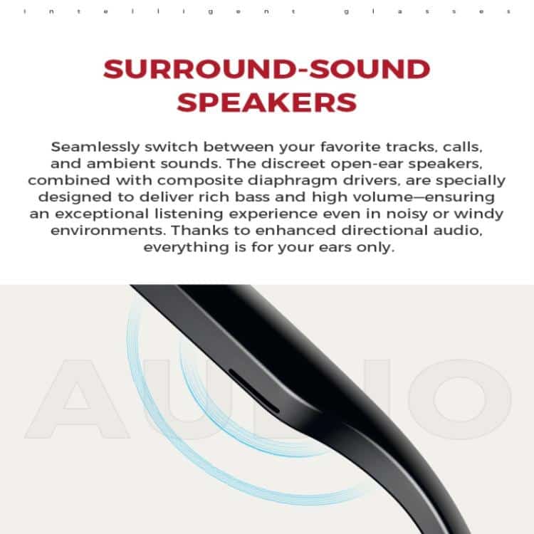1. Smarte Audiobrille: Nahtlose Integration in Ihre Umgebung dank Smart-Glasses-Technologie.Mit klarer Klangqualität und einem beeindruckenden Audioerlebnis.