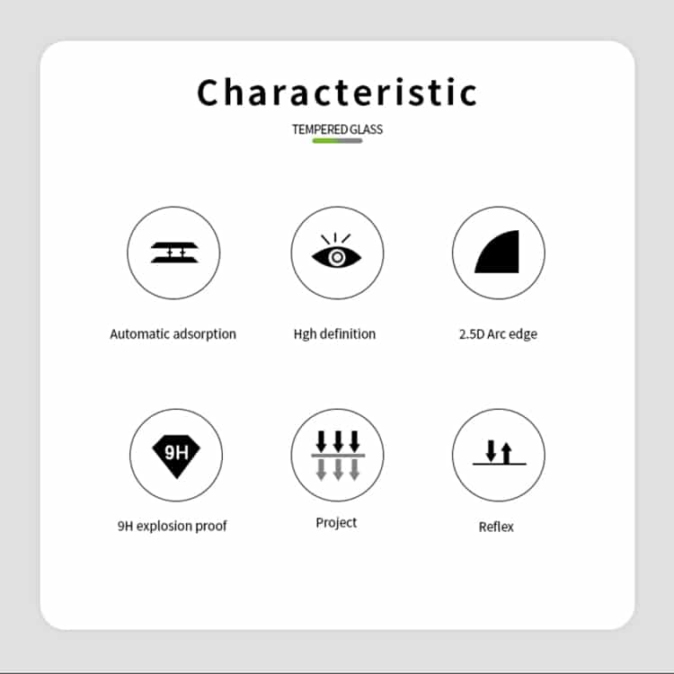 2. Hohe Härte. Diese Bildschirmfolie aus gehärtetem Glas hat eine hohe Härte, sodass sie effektiv und kontinuierlich verhindern kann, dass sie zerkratzt oder in Stücke zerbrochen wird. Wenn es zerbricht, zerbricht das gehärtete Glas in kleine Stücke, die nicht scharf sind, was es für den Benutzer sicherer macht.
