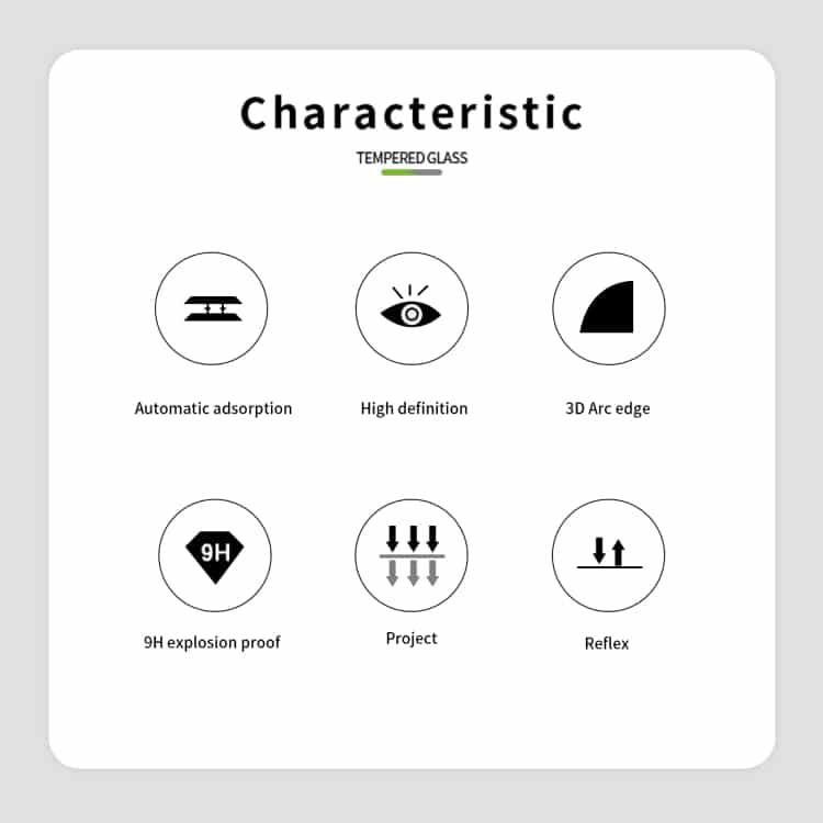 2. Hohe Härte. Diese Bildschirmfolie aus gehärtetem Glas hat eine hohe Härte, sodass sie effektiv und kontinuierlich verhindern kann, dass sie zerkratzt oder in Stücke zerbrochen wird. Wenn es zerbricht, zerbricht das gehärtete Glas in kleine Stücke, die nicht scharf sind, was es sicherer für den Benutzer macht.