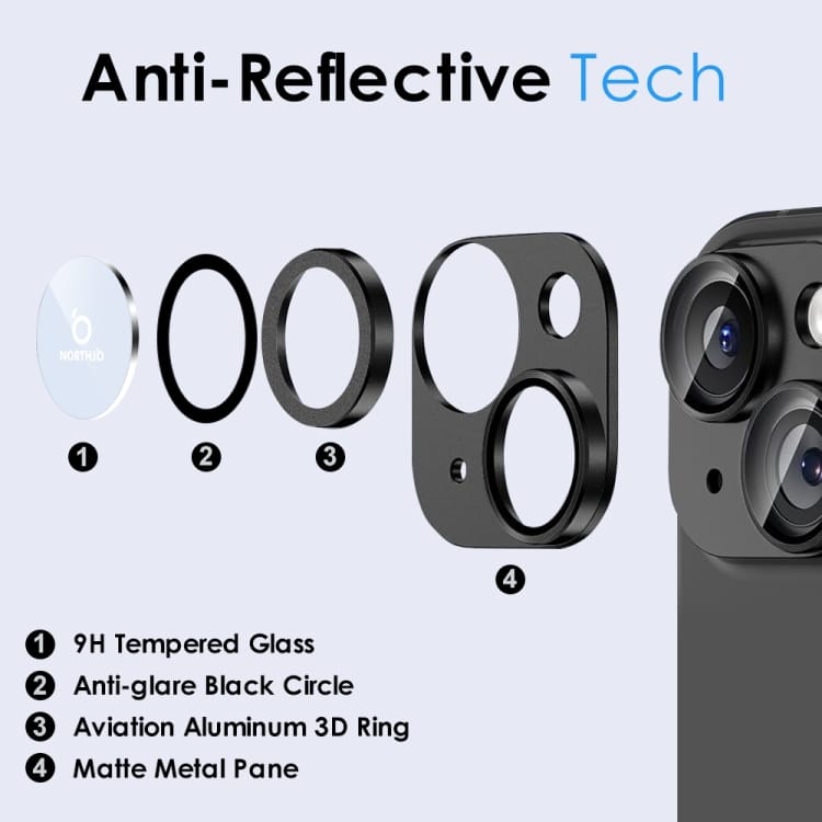 NORTHJO mattierte integrierte Hartglas-Rücklinsenfolie, For iPhone 15 / 15 Plus