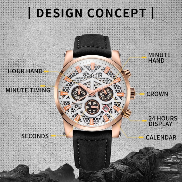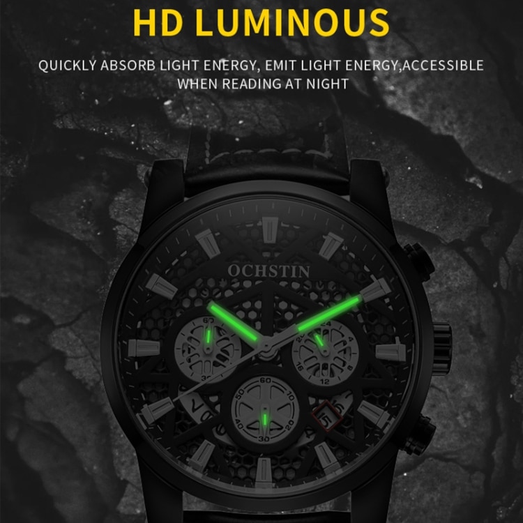 Ochstin 5052B Multifunktionale Business-Quarzuhr mit wasserdichtem Lederarmband