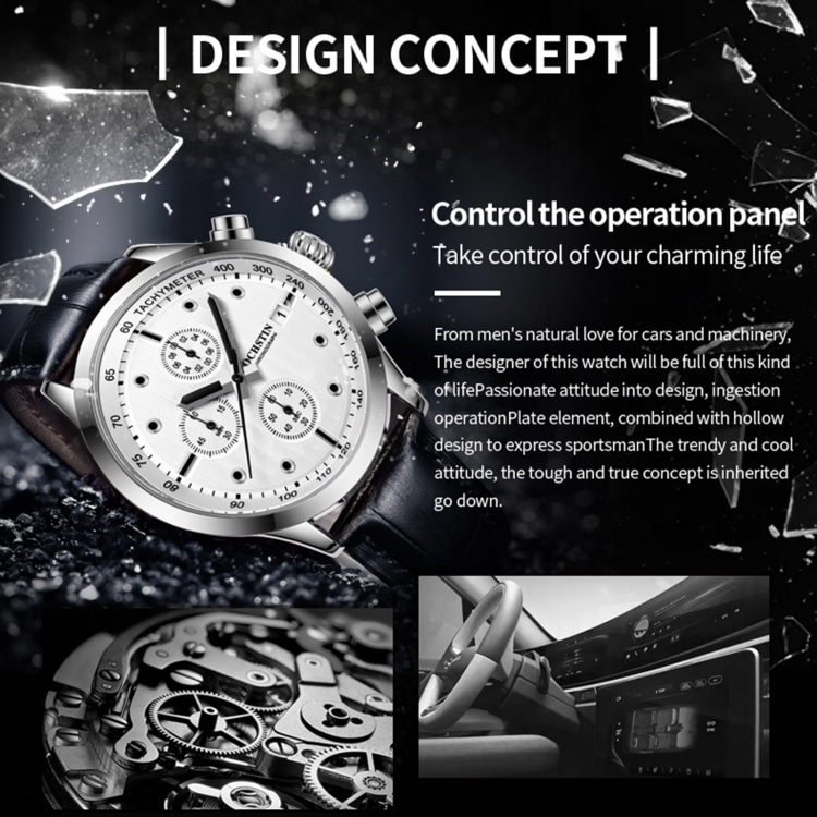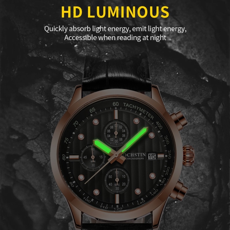 Ochstin 6042B Multifunktionale Business-Leder-wasserdichte, leuchtende Quarz-Herrenuhr