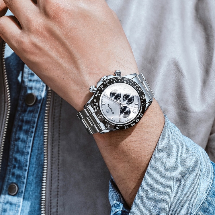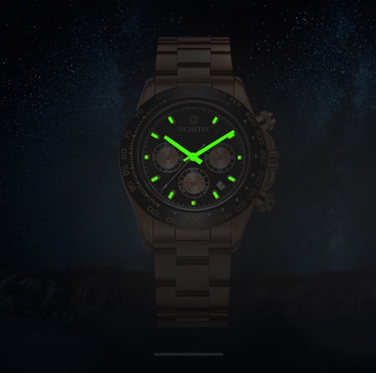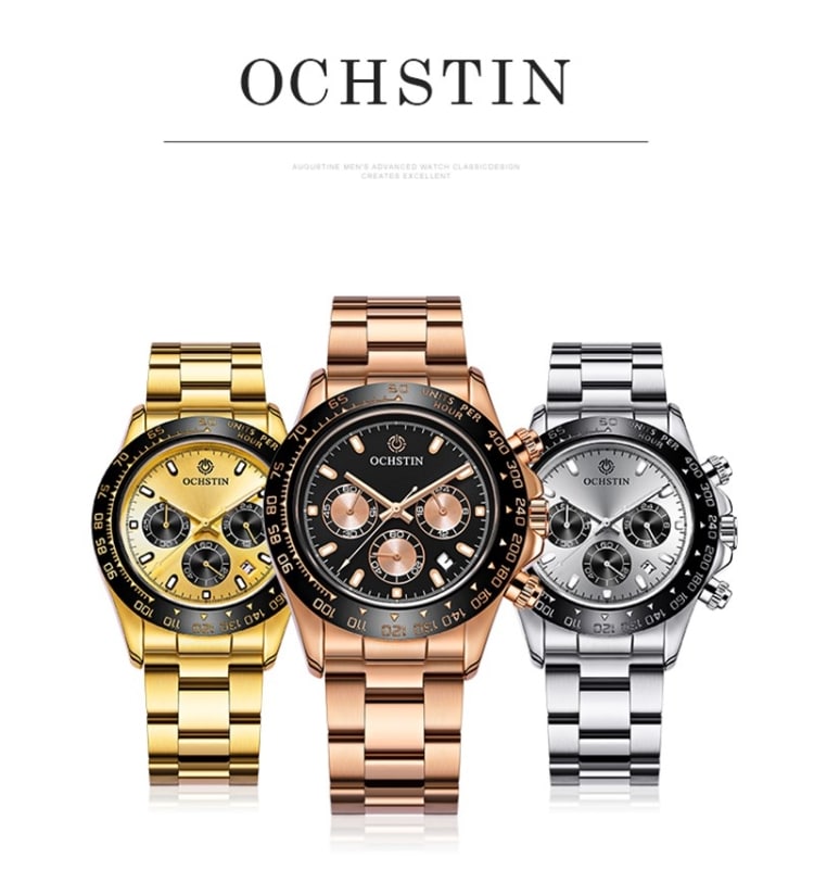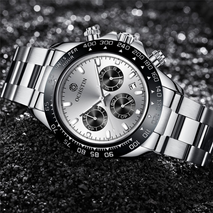 OCHSTIN Augusten 6103B Multifunktions-Quarzuhr, sportliche, leuchtende, wasserdichte Uhr, Kalender, Stahlband, Herrenuhr