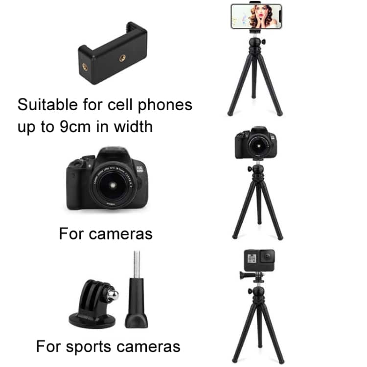Octopus Fish Silikon Kamera Stativ Desktop Klappständer, With Bluetooth Controller+Adapter+Phone Clip+Storage Bag+Screws, Single Tripod