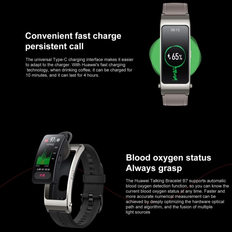 Original Huawei TalkBand B7 Smart-Armband, 1,53-Zoll-Bildschirm, unterstützt Bluetooth-Anruf / Herzfrequenz / Blutsauerstoff / Schlafüberwachung