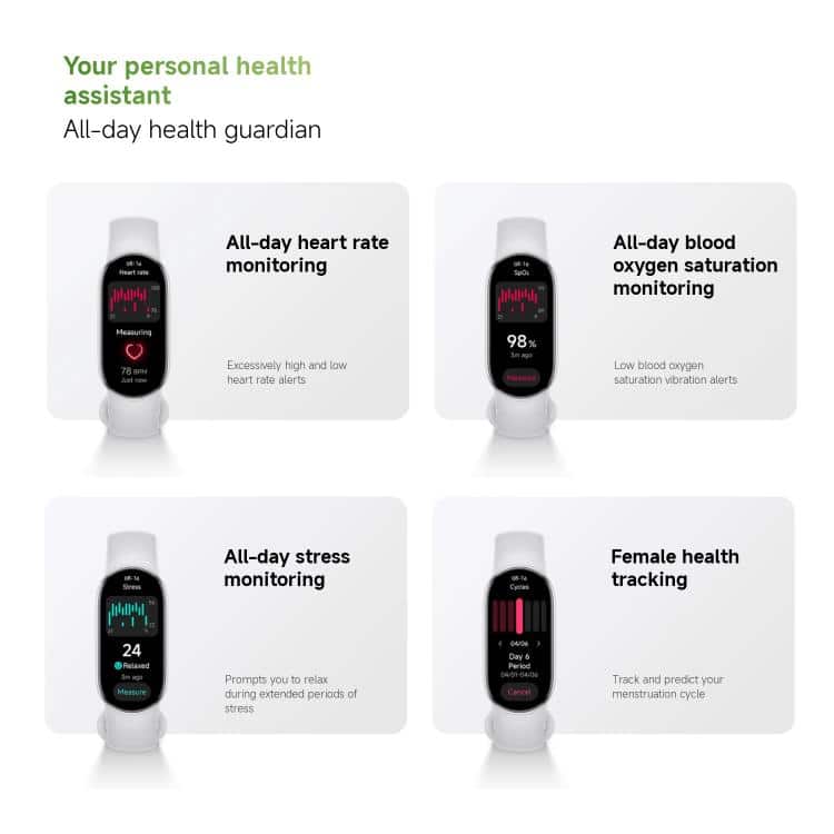 6. 24-Stunden-Gesundheitsüberwachung, Blutsauerstoff, Herzfrequenzüberwachung, Schlafüberwachung.