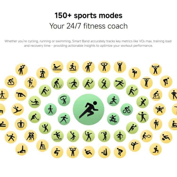 3. Über 150 Sportmodi, von Radfahren und Laufen über Indoor-Schwimmen bis hin zu Tanzen, erfassen verschiedene Daten wie maximale Sauerstoffaufnahme, Erholungszeit, Trainingseffekt, Trainingsbelastung und andere erweiterte Indikatoren präziser.