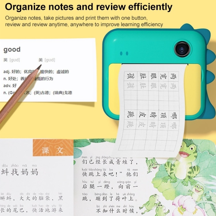 P1 No Card Sofortbildkamera für Kinder, 1200 W, vorne und hinten, Dual-Objektiv, Mini-Druck, fotografisches Digitalkamera-Spielzeug (grüner Dinosaurier), Green Dinosaur No Card, Pink Cat No Card, Green Dinosaur 16GB, Pink Cat 16GB, Green Dinosaur 32GB…