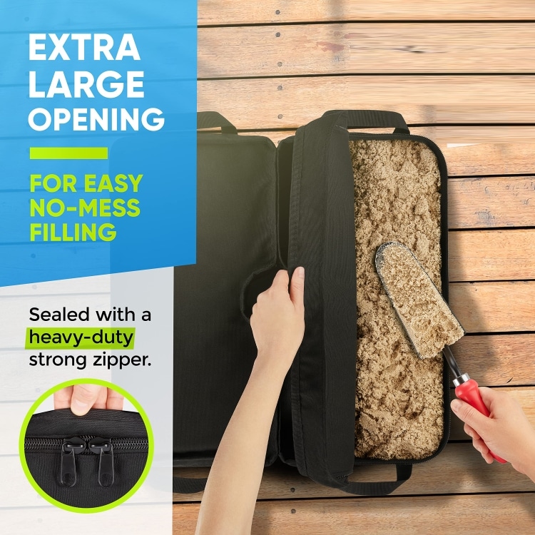 3. Verfügt über seitliche Öffnungen, sodass Sie die Basis einfach auf jeden Terrassenschirmständer stellen können (kein Tragen/Anheben nötig, wenn er voll ist)