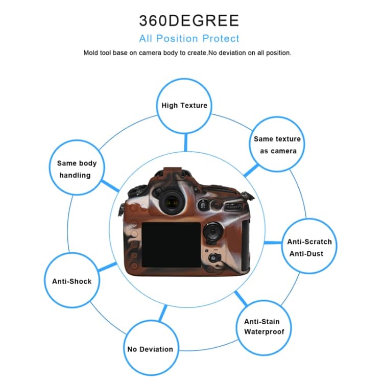 1. Silikonmaterial, passt eng an die Kamera an, beeinträchtigt die Nutzung der Kamerafunktion nicht und schützt die Kamera vor Kratzern, Stößen, Sand und Staub in der Kamera