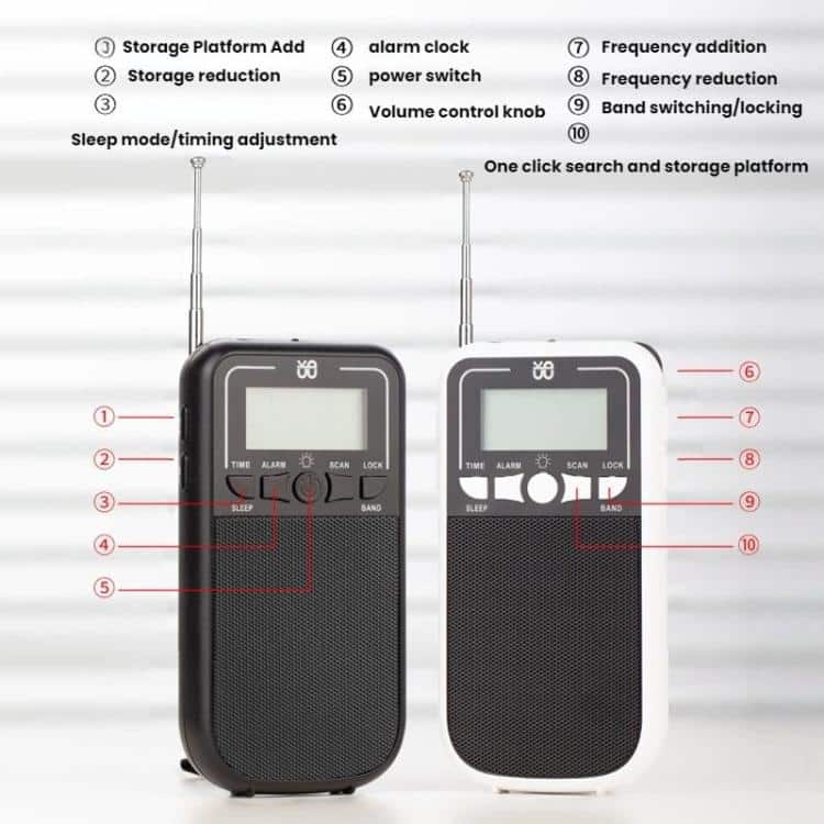 Portable FM/AM/SW Multi-Band High-Sensitivity Clock-Controlled Radio Player, For EU, For US
