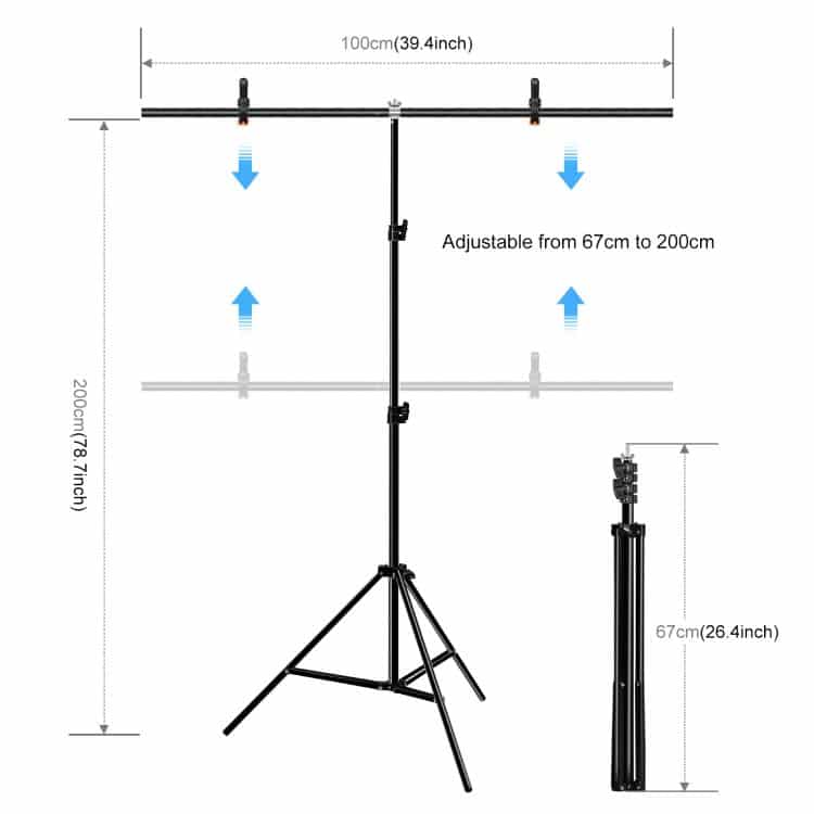 5. Die Höhe des Hintergrundrahmens (67–200 cm) kann durch Verstellen des Stativs angepasst werden.