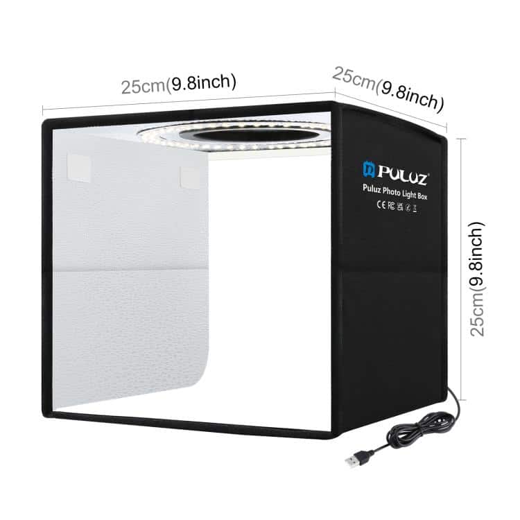 PULUZ 25 cm faltbare tragbare Ringlichtbox mit hohem CRI-Wert von 97, Fotobeleuchtung, Studio-Schießzeltbox mit 12 Farben Hintergründen, Größe: 25 cm x 25 cm x 25 cm, 25cm High CRI Box, 25cm High CRI Box US