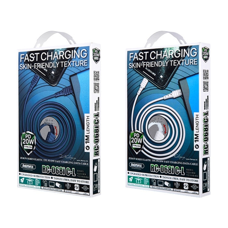 REMAX RC-068i PD 20 W Typ-C / USB-C auf 8-poliges hochelastisches TPE-Schnellladedatenkabel, Länge: 1 m