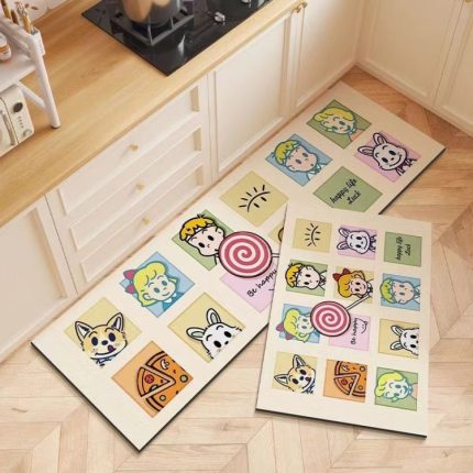 2 teile/satz Haushalt Küche Öl-Absorbieren Cartoon Pad Bad Rutschfeste Schnell Trocknend Matte, 40 x 60cm+40 x 120cm, 50 x 80cm+50 x 160cm