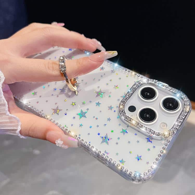 Rhinestone Glitter TPU Ring Holder Anti-fall Phone Case, For iPhone 16, For iPhone 15 Pro Max, For iPhone 15 Pro, For iPhone 15