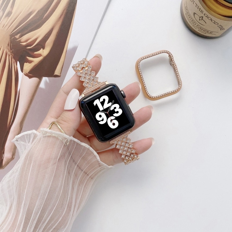 Rhombus Volldiamant-Metall-Ersatzarmband + Gehäuse für die Apple Watch-Serie