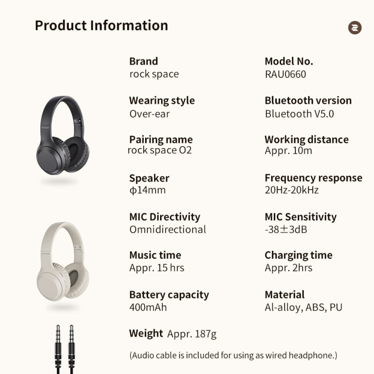 ROCK Space O2 HiFi Bluetooth 5.0 Kabelloses Headset mit Mikrofon, unterstützt TF-Karte, Space O2