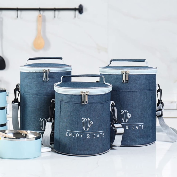 Runde Lunchtasche, isolierte Lunchbox, faltbare und tragbare Lunchtasche, L, M