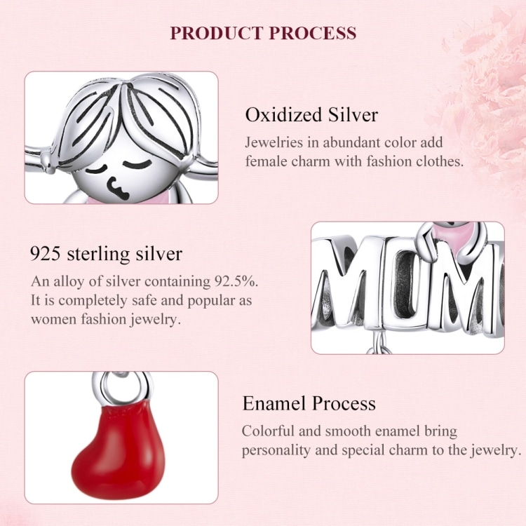 S925 Sterling Silber Anhänger zu Mama Perlen DIY Armband Halskette Zubehör