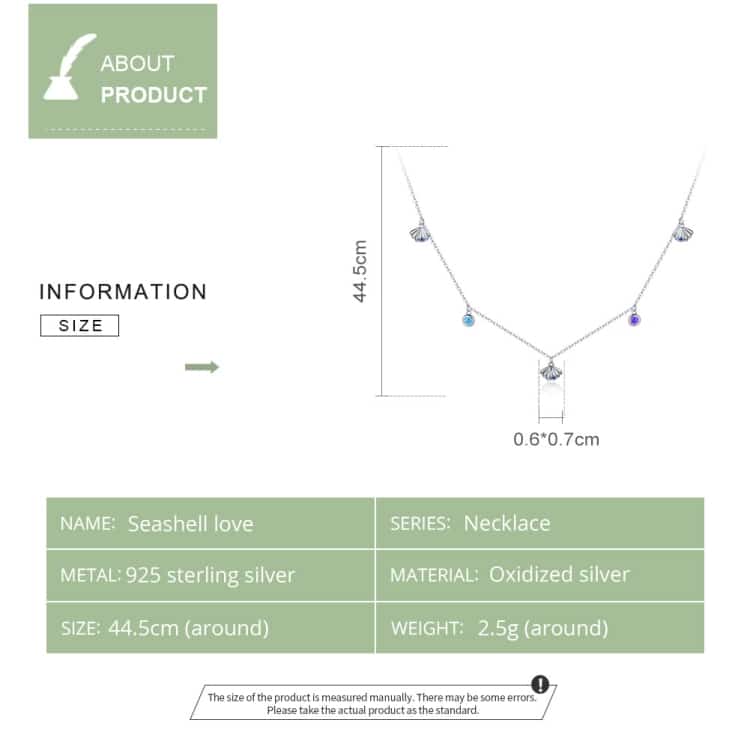 7. Kettenlänge: 44,5 cm (einstellbar), Jakobsmuschelhöhe und Breite: 0.6×0,7 cm