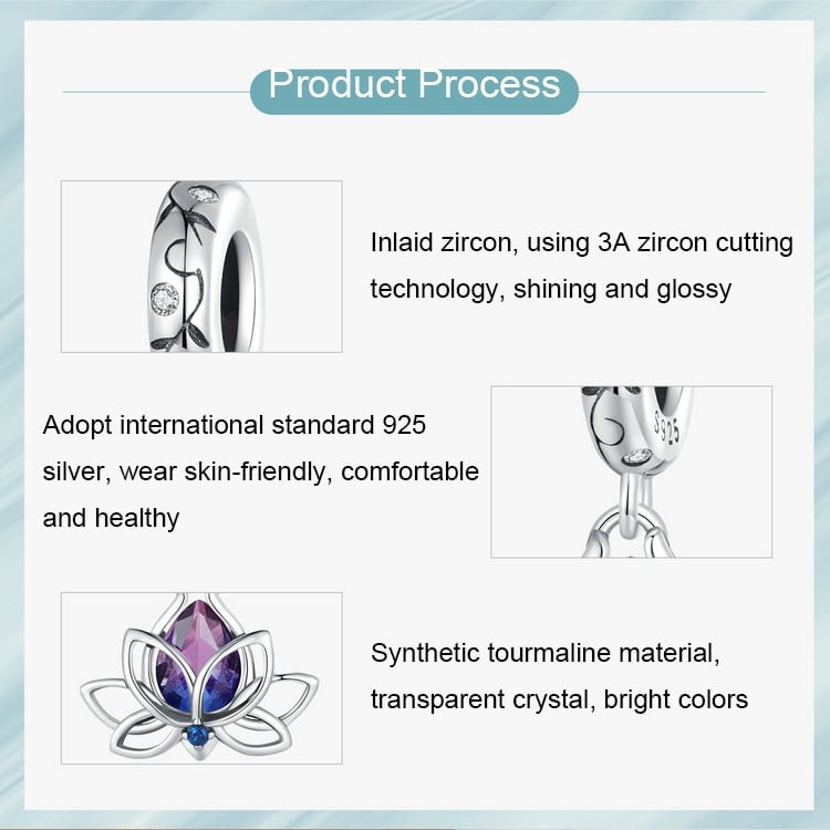 S925 Sterling Silber Lotus Anhänger Farbverlauf Wassertropfen Turmalin DIY Armband Perlen