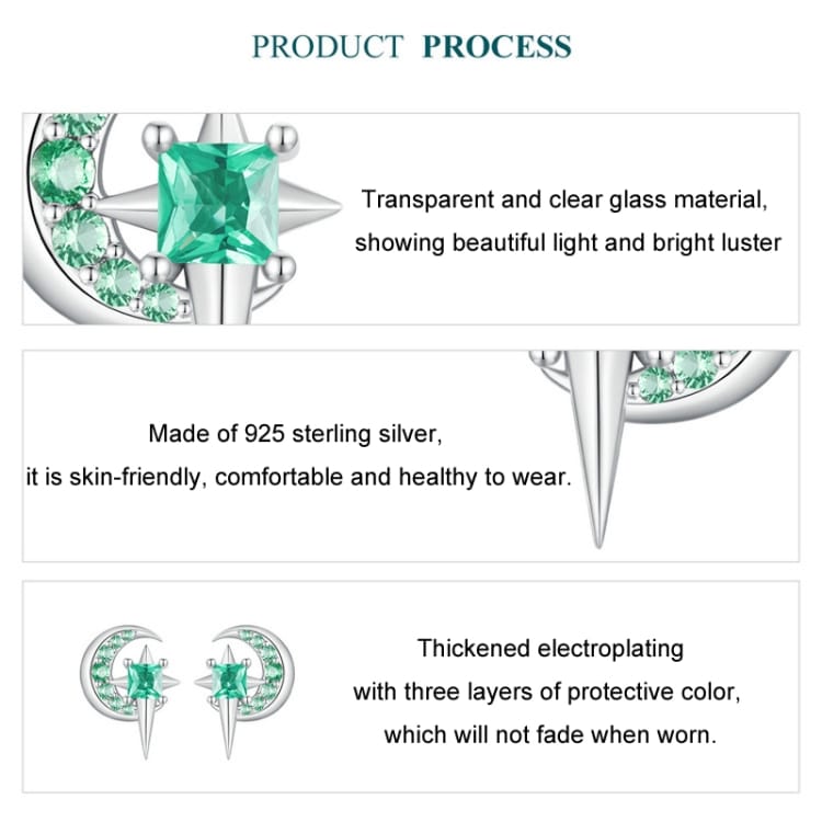 S925 Sterling Silber platinierte Fresh Star Moon Ohrringe