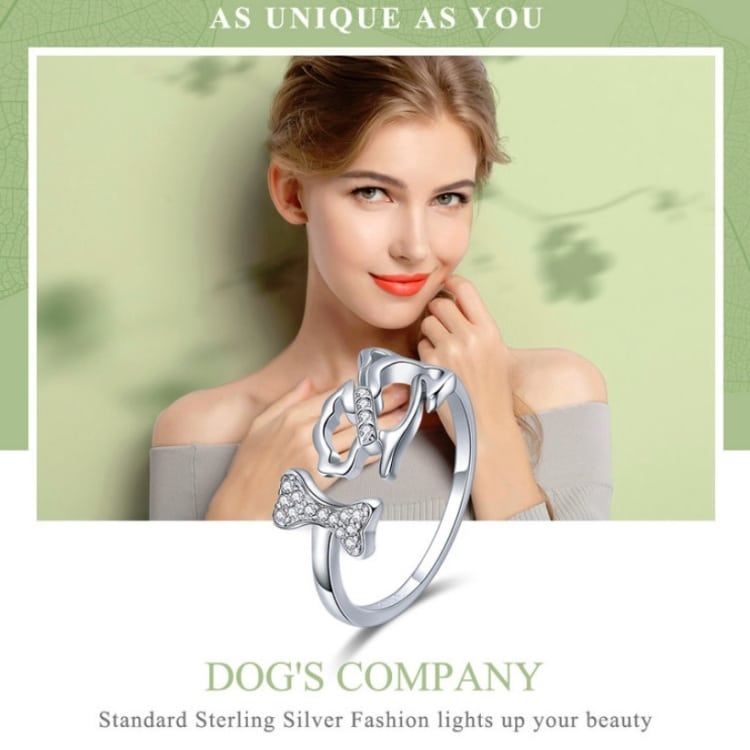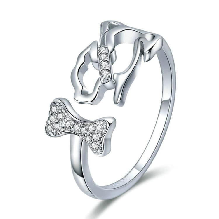 S925 Sterling Silber Ring Hundebegleiter eingelegter Zirkonring
