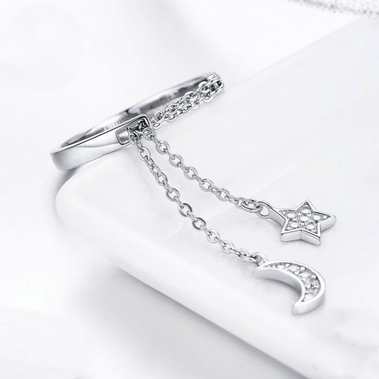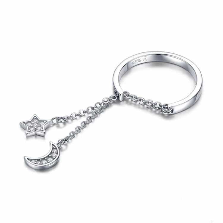 S925 Sterling Silber Stern und Mond offener Ring verstellbarer Ring