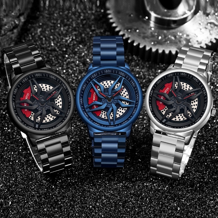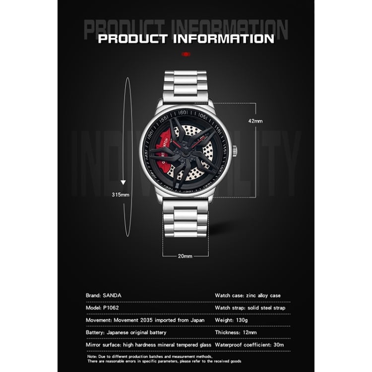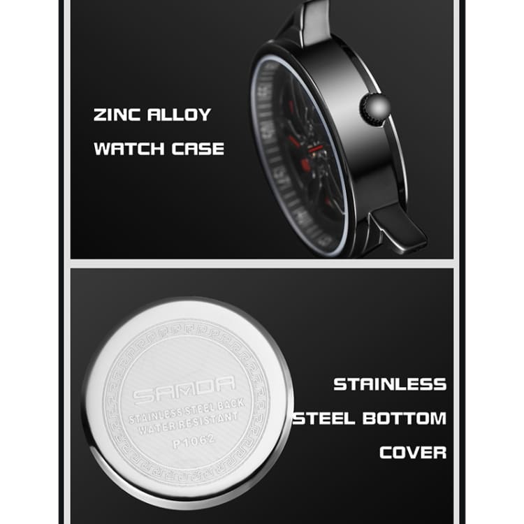 SANDA 1062 360-Grad-Quarzuhr mit hohlem, drehbarem Zifferblatt und Stahlarmband für Herren