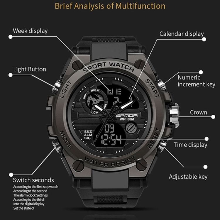 CHF 30.30SANDA Herren Elektronische Uhr Outdoor Sport Leuchtende Uhr