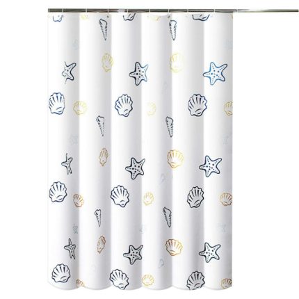 Sea World Polyester-Duschvorhang, verdickter wasserdichter Badezimmer-Duschvorhangstoff mit Haken